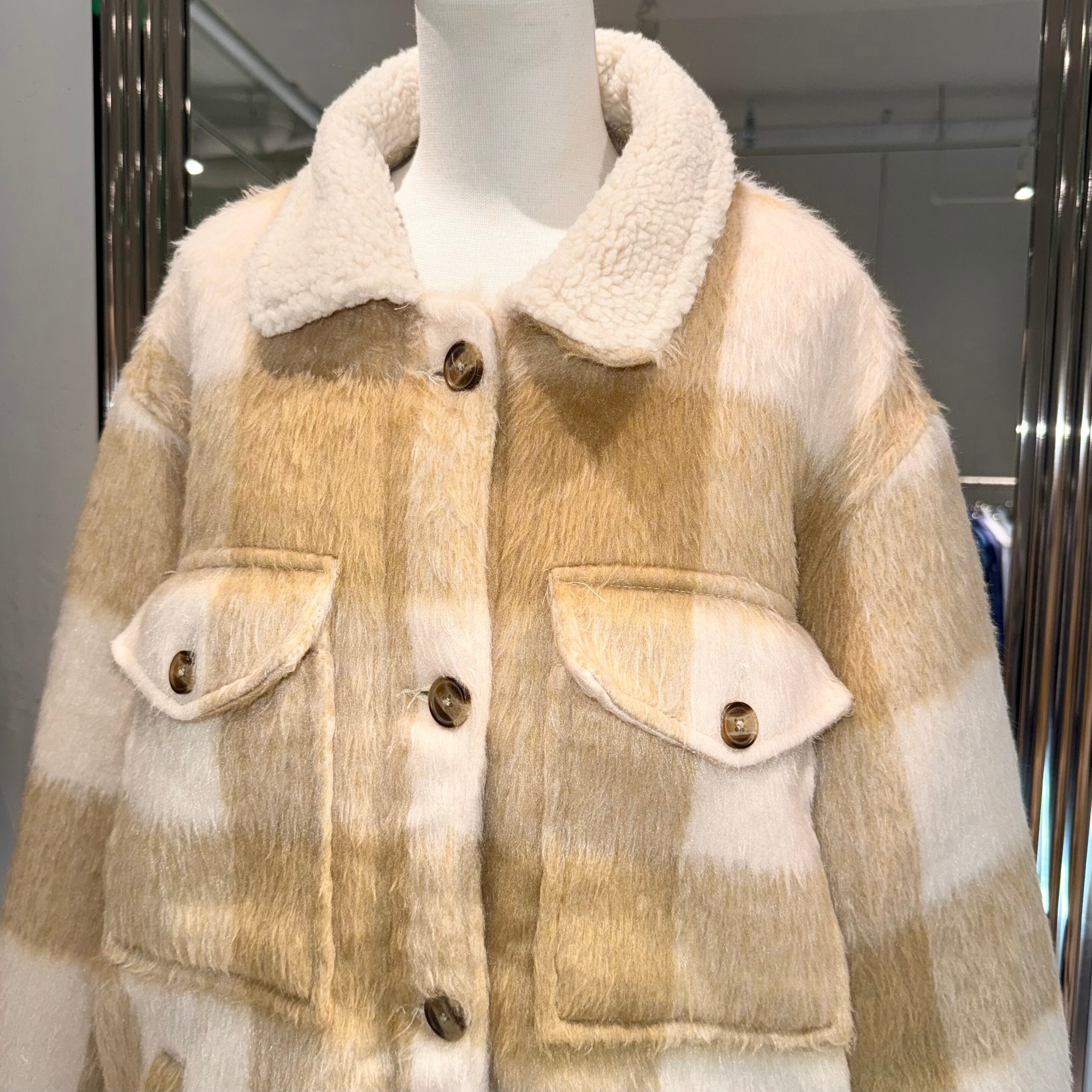 "USED Checked boa jacket"